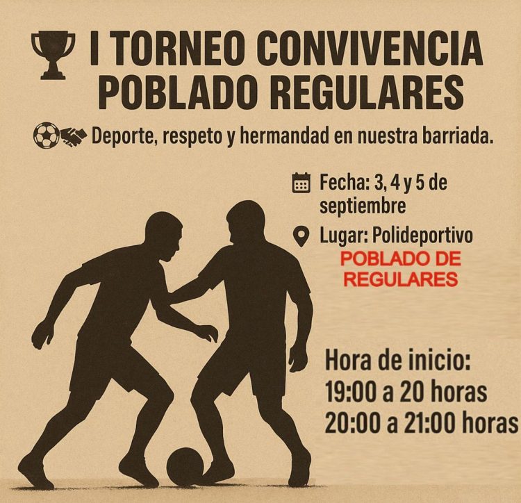 El Polideportivo del Poblado Regulares acoge los días 3, 4 y 5 de septiembre el I Torneo Convivencia Poblado Regulares, una cita que busca promover el deporte como herramienta de unión, respeto y hermandad en la barriada.