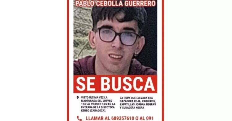 Los buzos de los Bomberos de Zaragoza continúan la búsqueda de Pablo Cebolla Guerrero, un joven de 20 años desaparecido en la capital aragonesa, que fue visto por última vez en la madrugada del 12 al 13 de febrero.