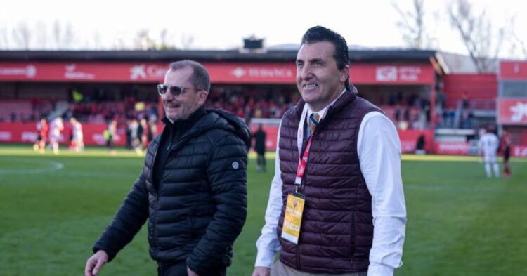 El director deportivo, Edu Villegas, celebra la tercera victoria consecutiva en la Liga Hypermotion, mientras el club inaugura su nueva sede oficial en la Calle Real ante las máximas autoridades.