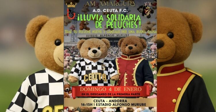 La propuesta tendrá lugar durante el encuentro de la Liga Hypermotion que disputarán la AD Ceuta y el FC Andorra el próximo domingo 4 de enero, a partir de las 16:15 horas, en el estadio Alfonso Murube. Coincidiendo con el descanso del partido, se llevará a cabo un lanzamiento solidario de peluches, una iniciativa ya consolidada en numerosos estadios de fútbol de todo el país y que ahora llega a Ceuta.