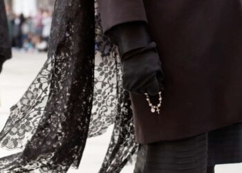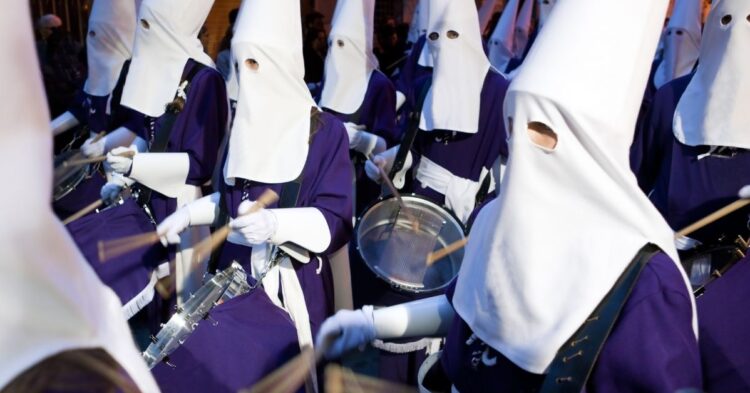 Junto a ellos, destaca la figura de los nazarenos o penitentes, miembros de las cofradías que visten túnicas y capuchas picudas. Este atuendo, cuyo origen se vincula a la Inquisición española, es un símbolo de penitencia y arrepentimiento. Asimismo, es tradicional la presencia de las mantillas, mujeres vestidas de luto con un velo negro, que acompañan el cortejo en señal de respeto.