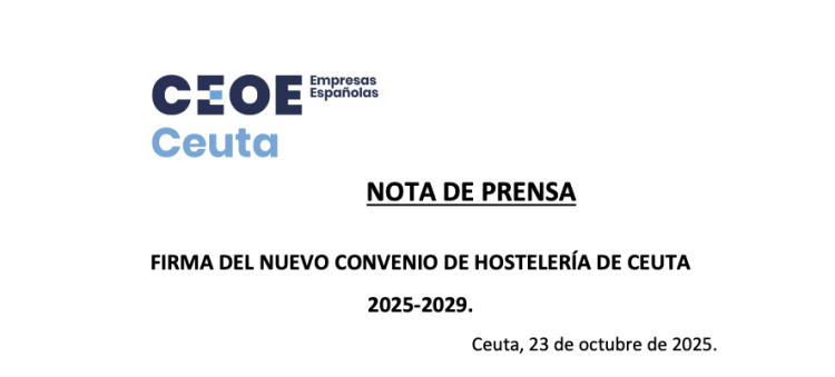 La Confederación de Empresarios de Ceuta (CECE), la Unión General de Trabajadores (UGT) y Comisiones Obreras (CCOO) han suscrito este jueves el nuevo Convenio Colectivo de Hostelería de Ceuta para el periodo 2025-2029. El acto de firma se ha celebrado en la sede de la Confederación de Empresarios y marca un hito en la actualización de las condiciones laborales y económicas del sector, adaptándolas a la realidad actual de la hostelería en la ciudad.