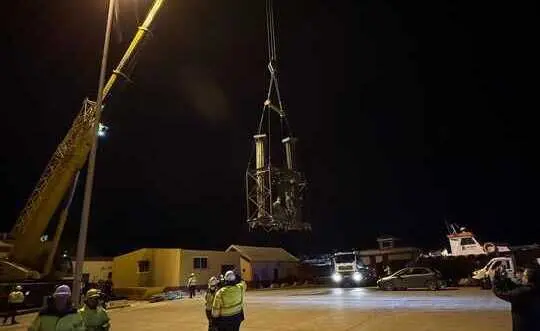 La emblemática obra de Ginés Serrán-Pagán, que durante años vigiló la entrada al puerto, fue cuidadosamente protegida y transportada utilizando camiones, grúas y un dispositivo de seguridad organizado por la Autoridad Portuaria. El trayecto requirió sortear múltiples tuberías de suministro, lo que convirtió el traslado en un proceso meticuloso y prolongado durante toda la noche.