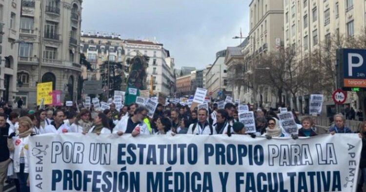 Médicos de distintas comunidades autónomas han vuelto a las calles en una huelga de dos días convocada por la Agrupación Profesional por un Estatuto Médico y Facultativo (Apemyf) para exigir una regulación específica que mejore sus condiciones laborales, en oposición al estatuto marco que negocia el Ministerio de Sanidad.