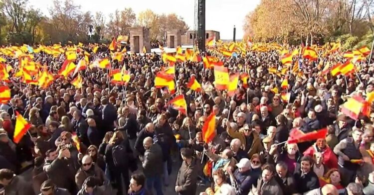 Alberto Núñez Feijóo, líder del PP, se dirigió a los miles de manifestantes en la protesta de Madrid, señalando que «el sanchismo está en la cárcel y debe salir del Gobierno». Esta frase resuena en un clima de creciente tensión política entre los dos principales partidos del país, en el que el PP busca capitalizar el descontento social hacia el Gobierno socialista.