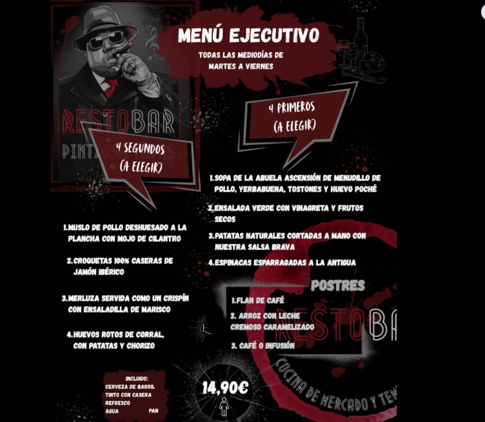 Uno de los grandes atractivos de Restobar es su Menú Ejecutivo, disponible de martes a viernes al mediodía, una fórmula pensada para disfrutar de una experiencia gastronómica completa sin renunciar al ritmo diario. El menú combina creatividad, producto de calidad y recetas reconocibles, reinterpretadas con un estilo propio.
