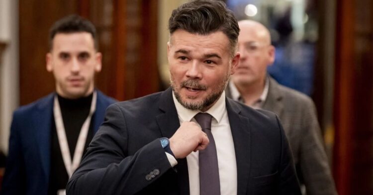 A pocas horas del coloquio con el diputado de Más Madrid Emilio Delgado, que ha generado gran expectación en la izquierda, el portavoz de ERC en el Congreso, Gabriel Rufián, ha restado importancia a la posible ausencia del presidente de su partido, Oriol Junqueras, en el acto. “A Junqueras lo invité a mi boda, cómo no le voy a invitar a todo”, afirmó Rufián, quien confirmó que Junqueras se encuentra en Madrid para una reunión “rutinaria” con el grupo parlamentario.