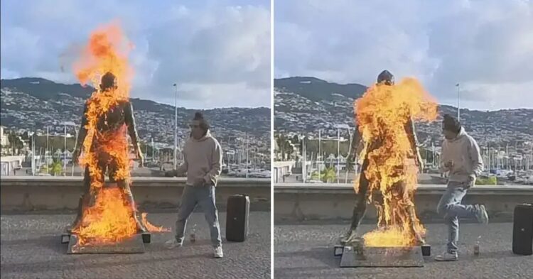Un incidente sorprendente y preocupante tuvo lugar frente al Museo CR7 en Funchal, Madeira, cuando un hombre, que se identifica en redes sociales como ‘zaino.tcc.filipe’, intentó prender fuego a la estatua del astro del fútbol Cristiano Ronaldo.